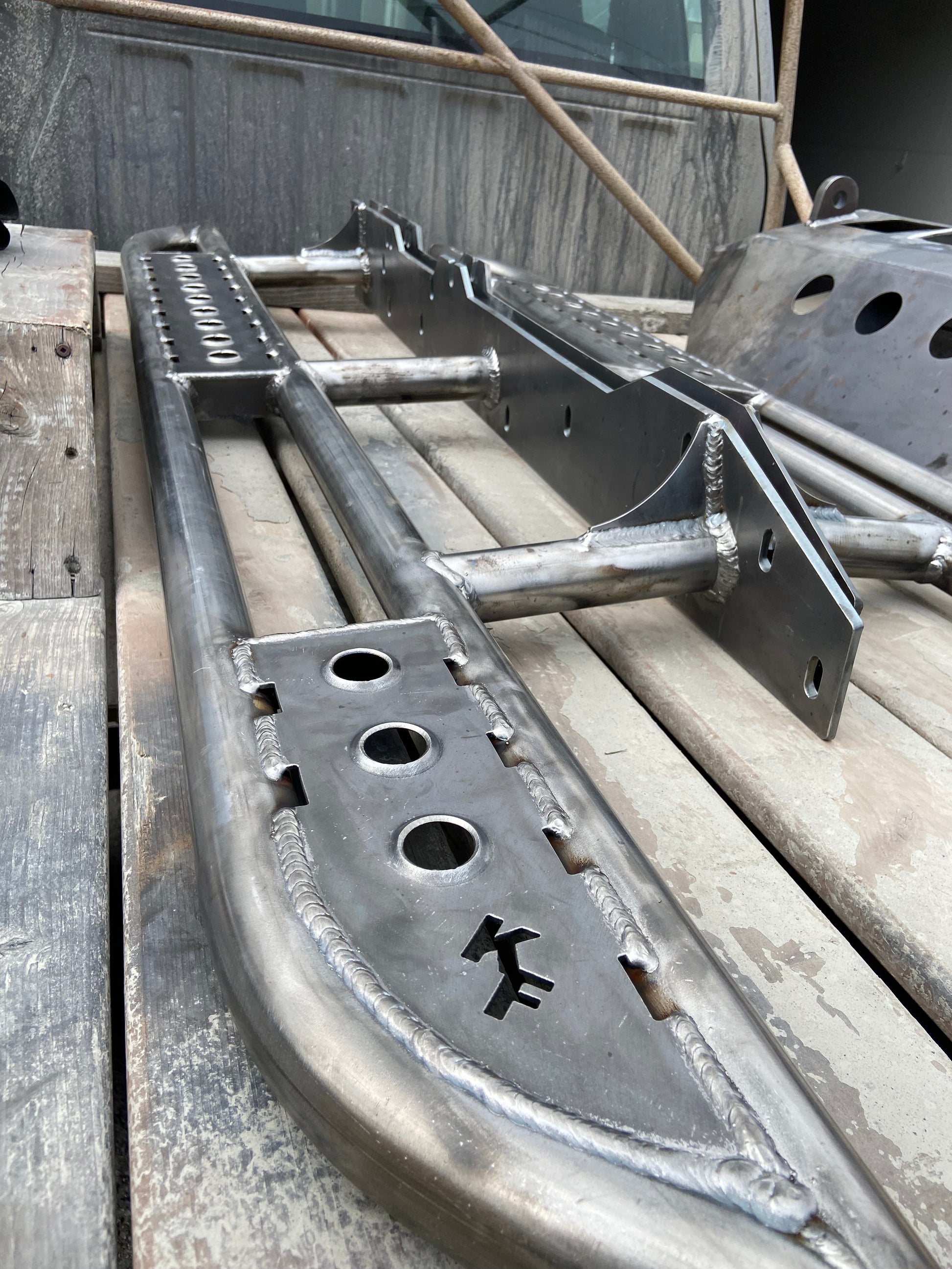 Protect the rocker panels and doors of your truck with our fully bolt-on rock sliders,